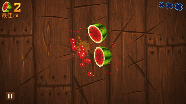 特效:在街机和禅境模式中会使水果额外反弹一次(说白了,就是没有切到的水果再重新抛一次。)