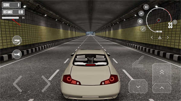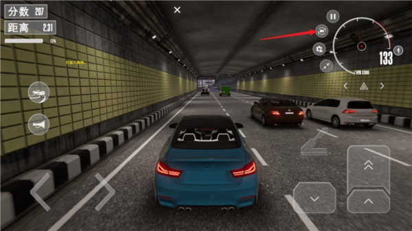 3、左侧按钮控制方向,右侧按钮控制加速与刹车,精准操控才能取得更高分数。