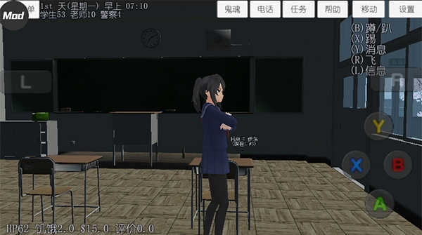 玩法:你是爱跷课的坏学生,一次心血来潮去学校上课,想不到缺课太多,校长广播要把你抓住并惩罚,3-4名老师开始抓你,你只能跑,只能在特定地方瞬移且不能飞行(短时间飞行可以,视为跳跃),而且还有特定日常的事要做,必须撑过一天才能成功。你只能到自家,视听教室,花园,游泳池,图书馆和女仆咖啡厅这几个地方才能瞬移,不能瞬移到山上或海上,可以投降,到花园拿武器将老师全杀掉即可投降,可以用设定或其他暂停游戏查看任务。