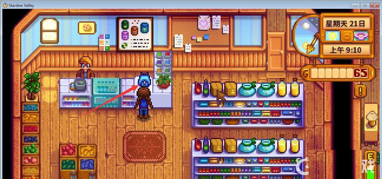 1、进入星露谷物语的游戏中,找到皮埃尔的杂货店,打开房门走进去。