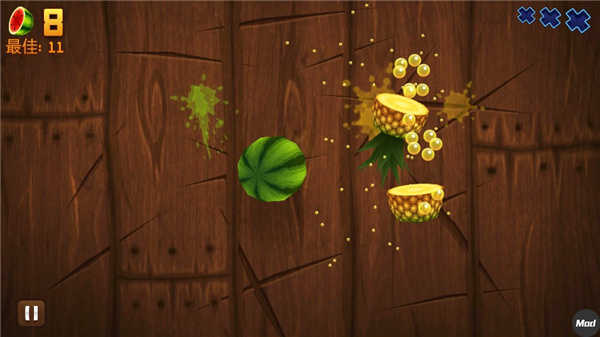 4、理论上3个香蕉一起切到并保持连击是得最高分的理想环境,曾经有过3香蕉加连击,2倍积分结束时加分300+。