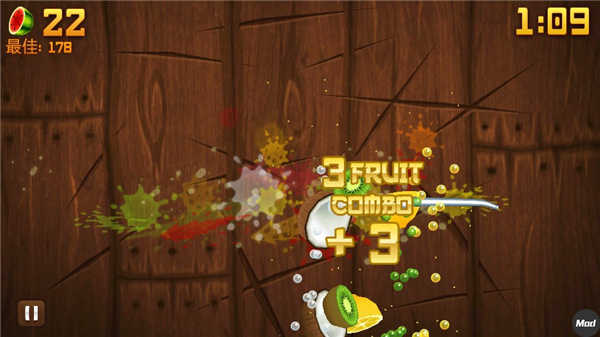 4、音效强大,每一刀切到水果,都能听到清脆的水果破裂声,简直酸爽。