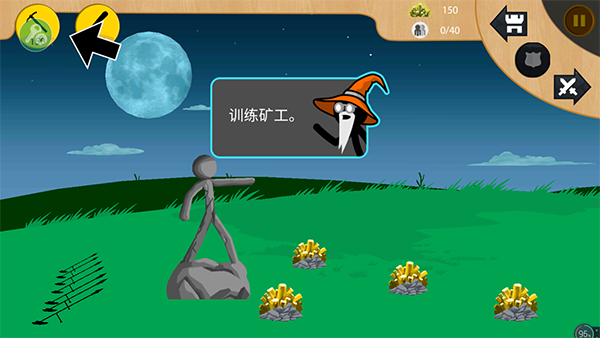这样我们就能快速获得足够多的矿石,用来召唤更多攻击性火柴人。