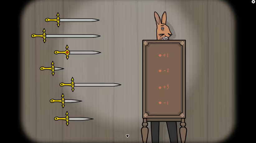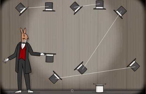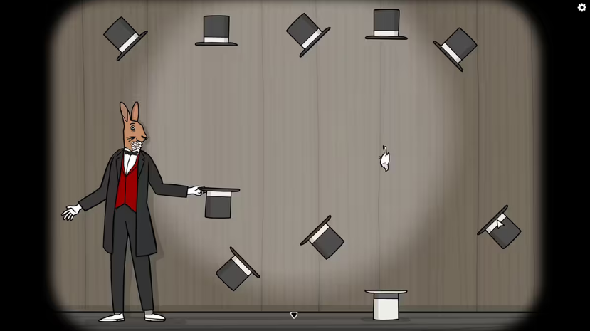 9、第九幕:通过改变兔子先生抛出小白兔的角度,让小白兔精准无误地落入放置在地上的魔术帽。