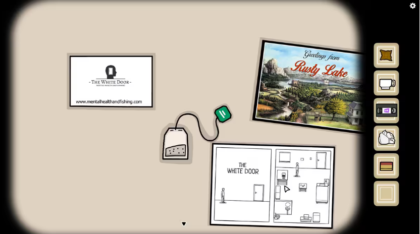 18、小丑 第三集大门左侧 Rusty Lake 挂画,点击酒店,按照展柜中 7285 对应展品的位置,输入密码。