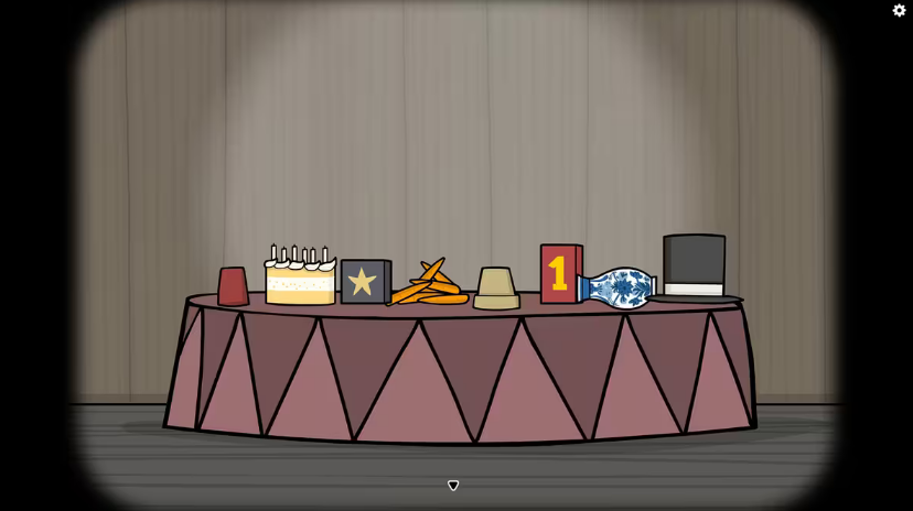 4、第四幕:调整手枪的发射方向,将5只帽子与棒球击落。之后将棒球,以及紧接着掉落的其他物品放到对应的帽子里。
