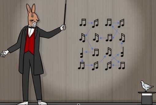 19、第十九幕:点击所有音符。但点击音符之后,下一个音符需要在方向上顺着现在的音符。下图为其中一种合法点击方式。