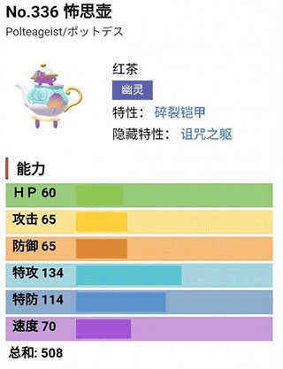 怖思壶虽然速度属性很低,需要依赖一些辅助型宝可梦,但它的特攻和特防很高,用它当副C使用也是非常不错的选择哦!
