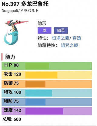多龙巴鲁托龙和幽灵属性的宝可梦,不仅自身属性非常高(142的速度、120的攻击、100的特攻、75的特防和防御),还可以使用龙系技能压制敌人,大家感兴趣的话,也记得收藏培养它哦。